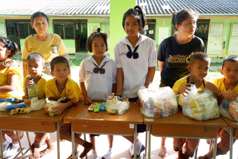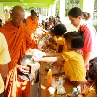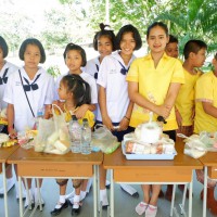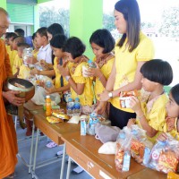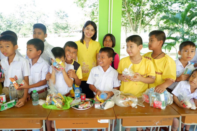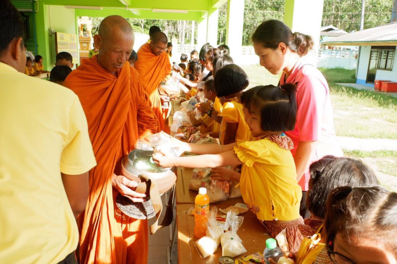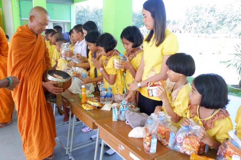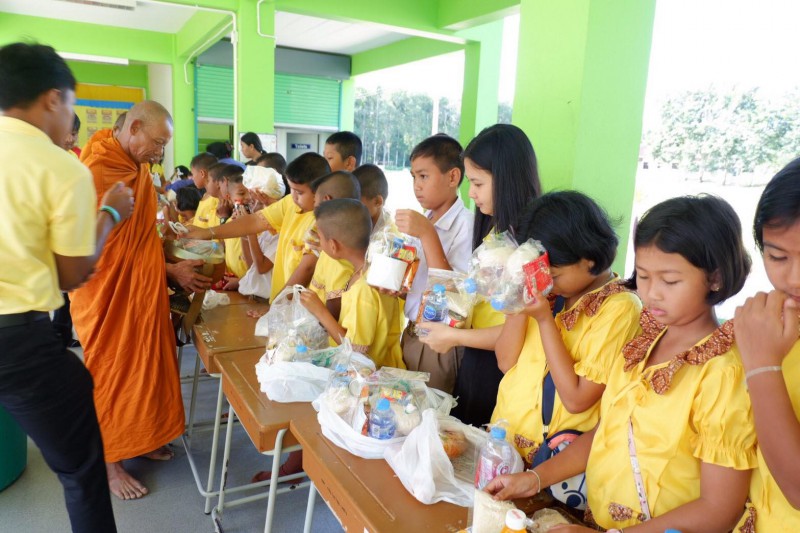 ผู้บริหาร คณะครู นักเรียนและผู้ปกครองร่วมกันตักบาตรข้าวสารอาหารแห้ง ถวายเป็นพระราชกุศลเนื่องในโอกาสวันเฉลิมพระชนมพรรษา พระบาทสมเด็จพระเจ้าอยู่หัว